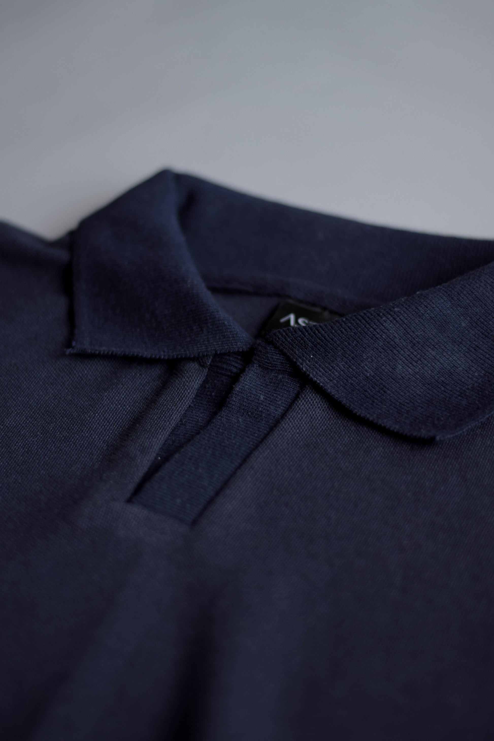 Made from premium 100% cotton pique with a refined texture, this navy blue piece is perfect for any occasion. Its straight fit ensures a sharp and versatile look.